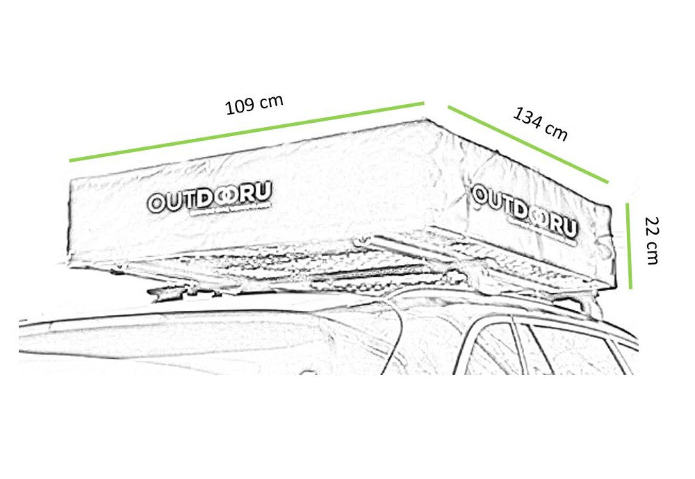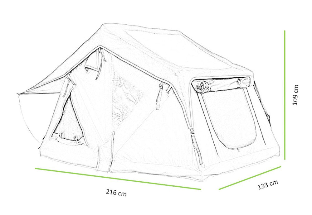 Discover the perfect size for your adventure: our roof tent in numbers. The roof tent is fully stretched 216cm long and 133cm wide.