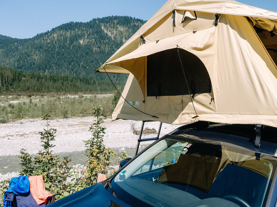 Le tende da tetto di OutdoorU convincono per la loro particolare semplicità e rapidità di montaggio, che può essere effettuato anche da soli. Ciò è dovuto in parte ai pali in alluminio, leggeri ma robusti.