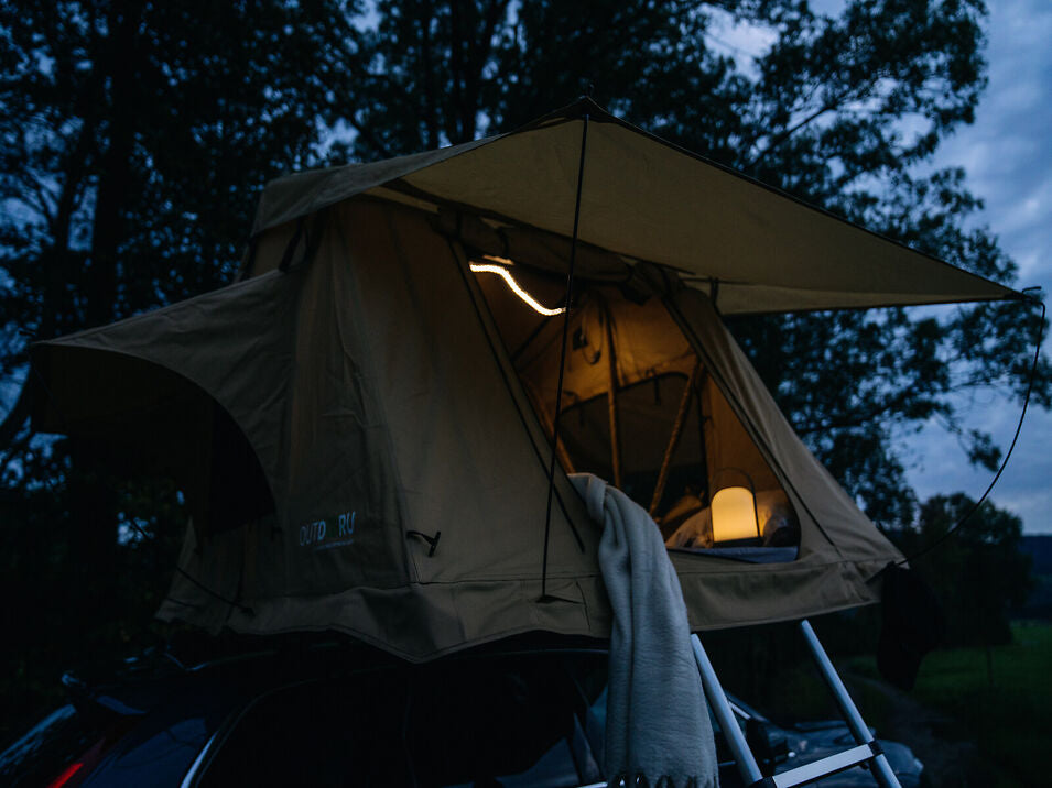 Il tessuto delle nostre tende da tetto è realizzato in un tessuto misto Oxford 420D impermeabile di altissima qualità, noto anche come tela. Questo tessuto è un'opera d'arte realizzata in cotone e poliestere e combina i vantaggi di una fibra naturale con quelli di un moderno materiale high-tech.