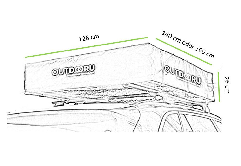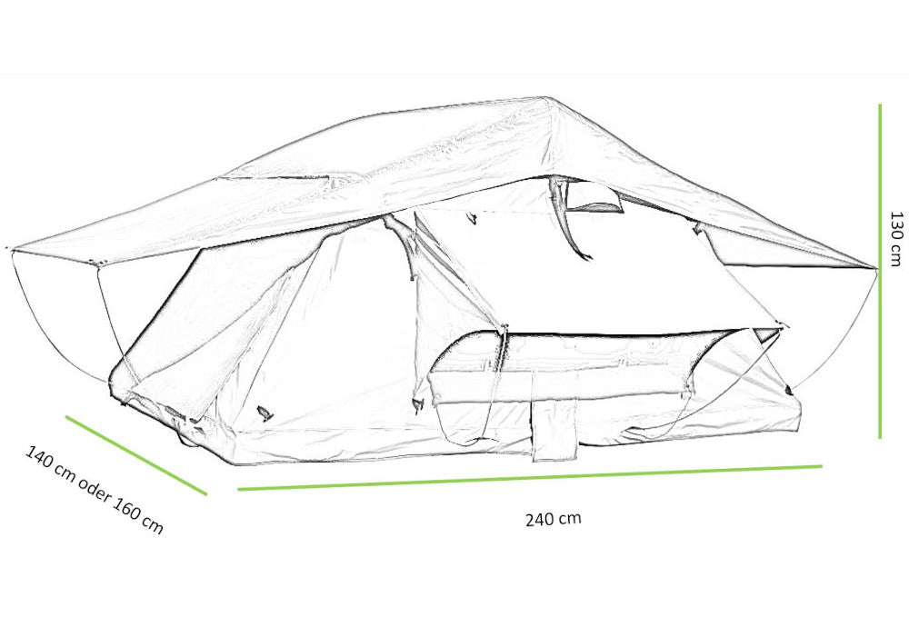 Scoprite la dimensione perfetta per la vostra avventura: la nostra tenda da tetto in numeri. La tenda da tetto è lunga 240 cm quando è completamente distesa e larga 140 cm, 160 cm o 190 cm.